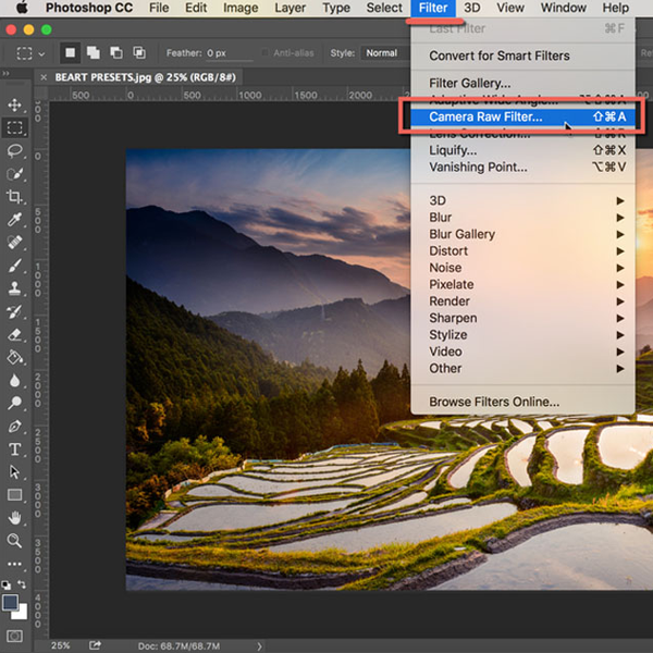 O Camera Raw, permite importar e aprimorar imagens raw, é uma ferramenta indispensável para fotógrafos profissionais desde que foi lançado pela primeira vez em 2003. Os aplicativos compatíveis com o Camera Raw incluem Photoshop, Photoshop Elements, After Effects e Bridge.